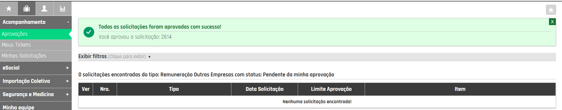 Marque a solicitação e clique em Aprovar.