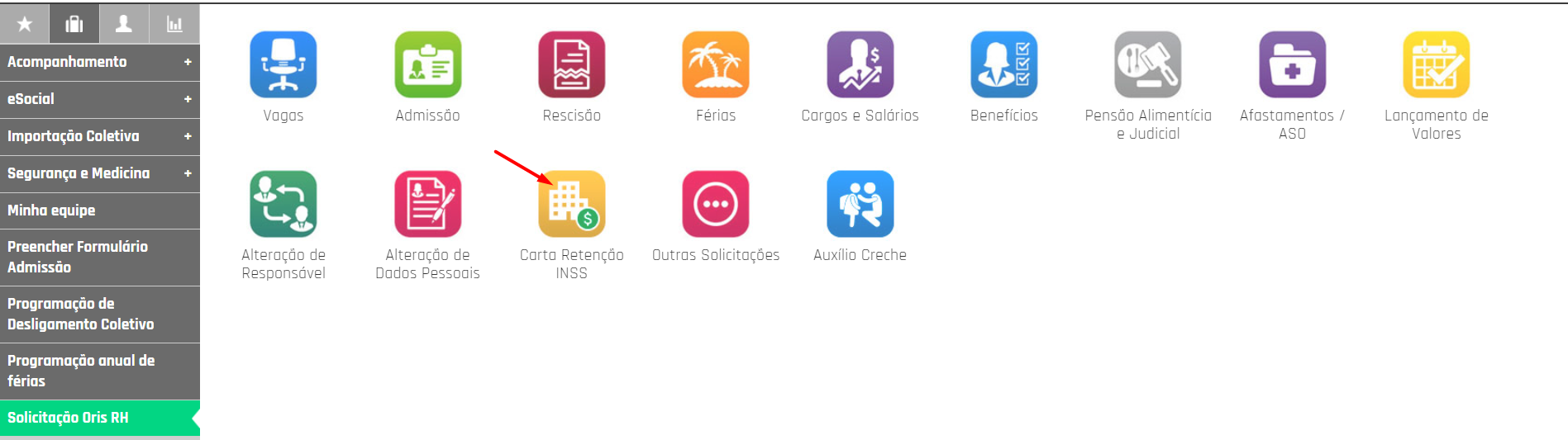 1. Acessando o módulo de carta de retenção INSS