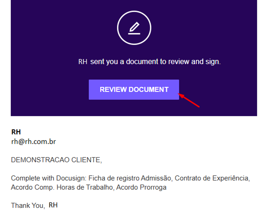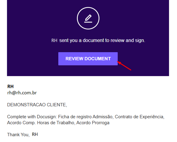 Ao concluir o envio, o funcionário receberá um e-mail com o link para realizar a assinatura, de acordo com o fornecedor contratado.