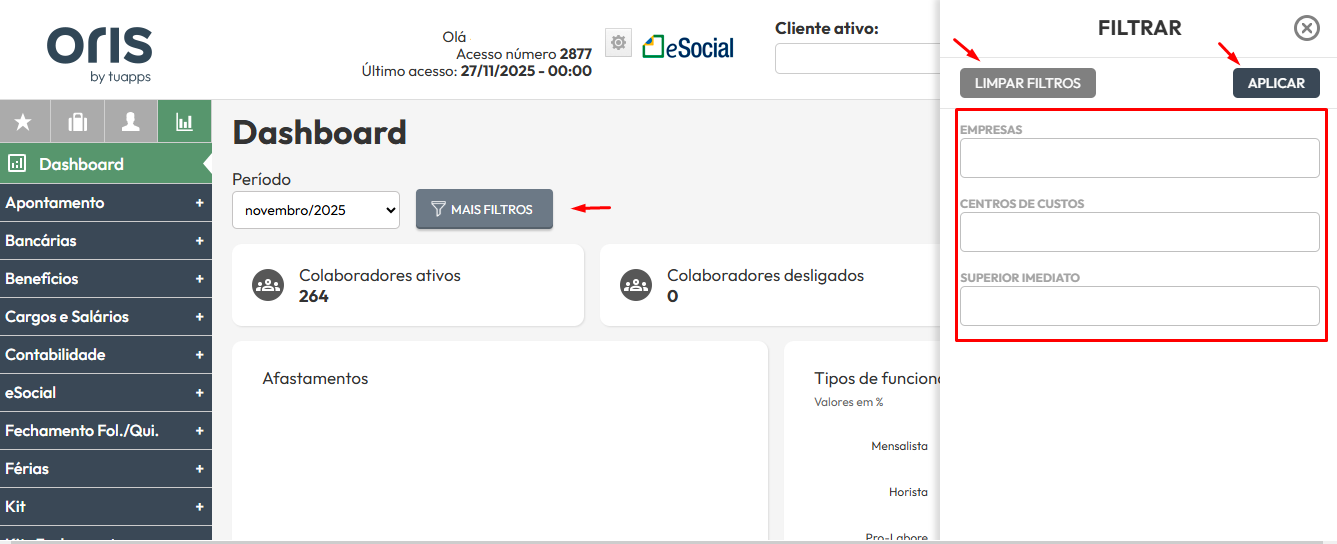 O Portal ORIS ganhou uma nova funcionalidade para tornar o acompanhamento de informações da Folha muito mais visual, rápido e intuitivo: o Dashboard Gerencial.